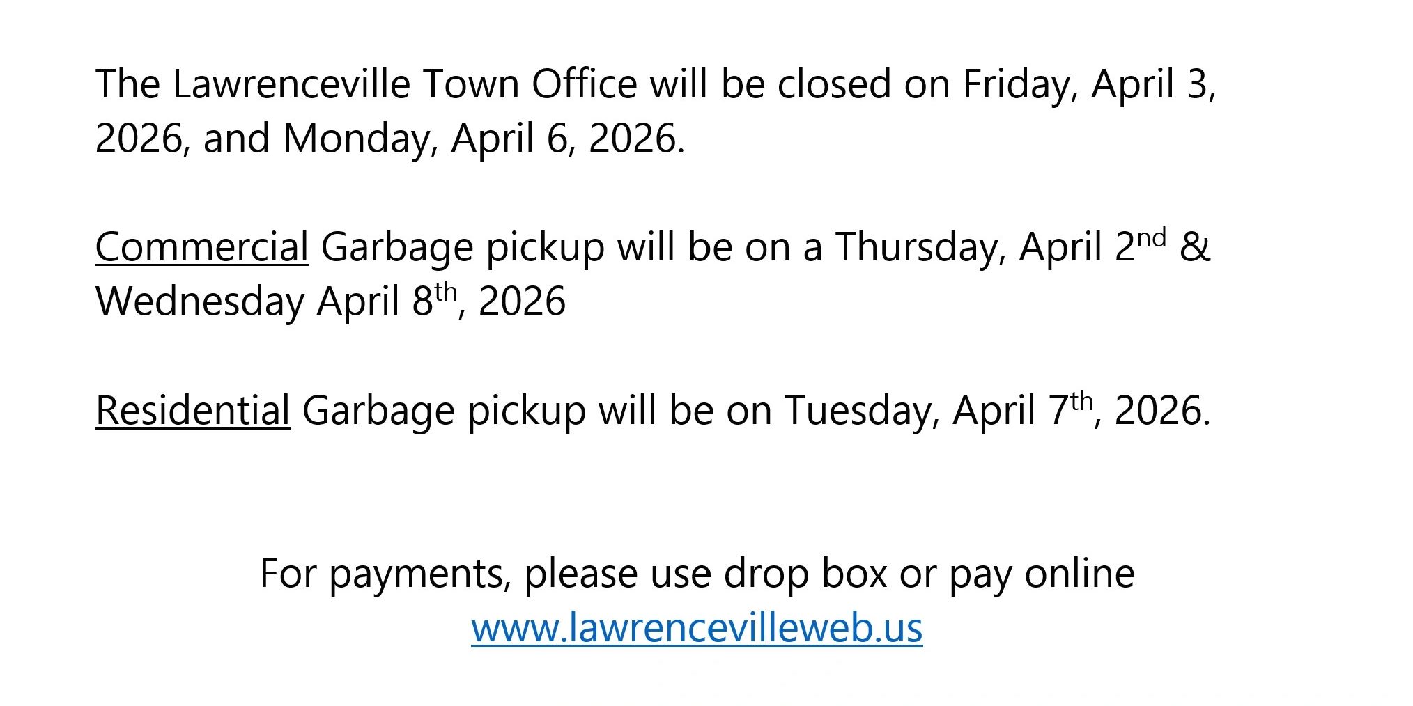 THE LAWRENCEVILLE TOWN COUNCIL REGULAR MEETINGS WILL BE HELD ON THE SECOND TUESDAY OF EACH MONTH AT 7:00 P.M. THE TIME WAS CHANGED BY ORDINANCE AND IS EFFECTIVE WITH THE SEPTEMBER 8, 2020 MEETING.