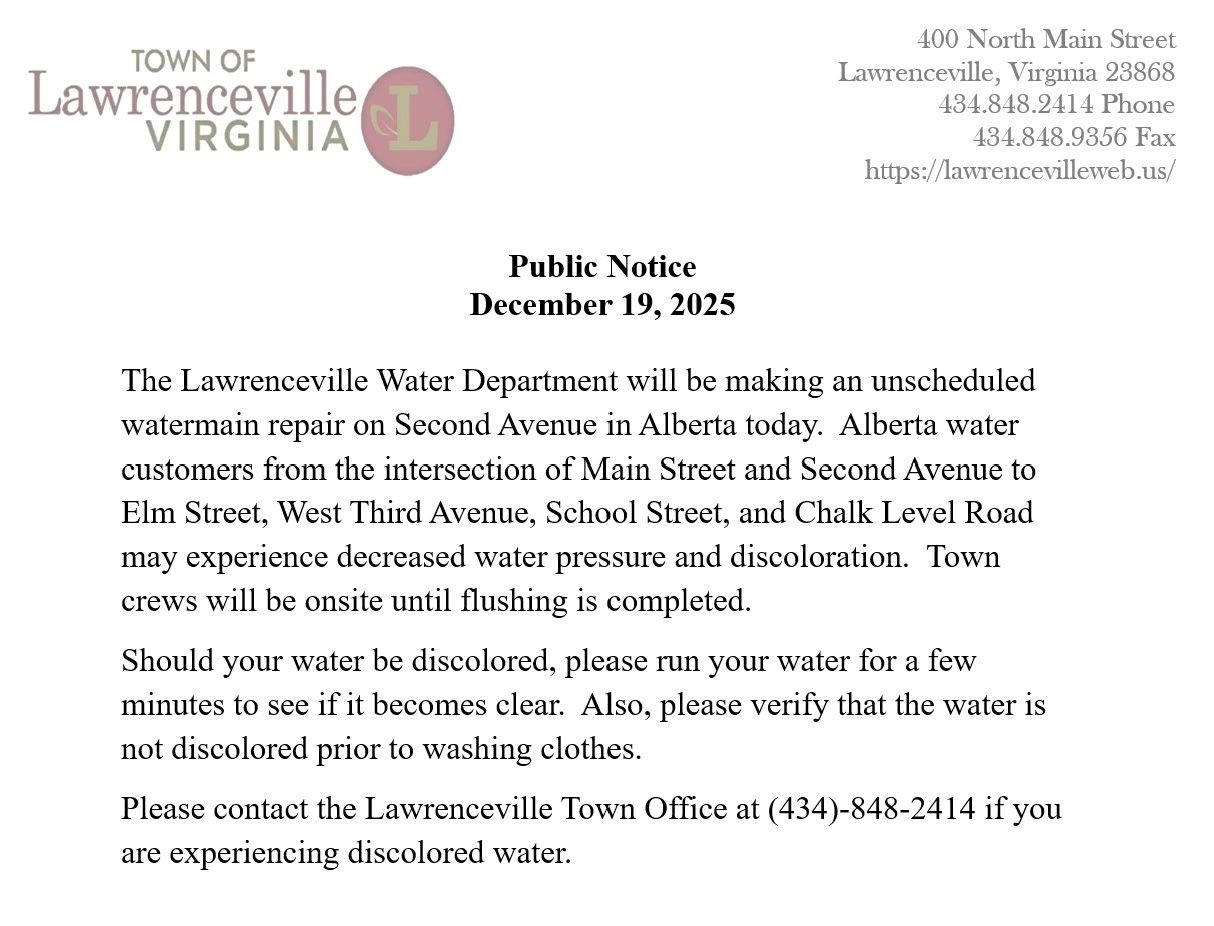 Founded in 1814 and named after a famous racehorse, Lawrence, the town is centrally located between Richmond, Virginia, and Raleigh, North Carolina. Rolling pastures, southern hospitality, local shopping, historic sites, and recreational trails and waterways await your enjoyment!